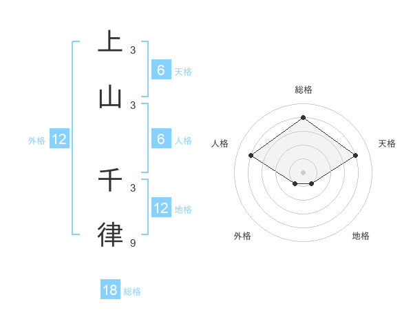 上山 千律さんの総格は18画の4点!