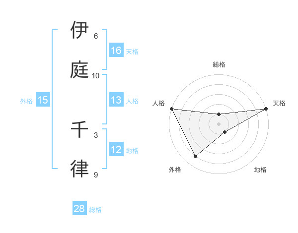 伊庭 千律さんの外格は15画の4点!