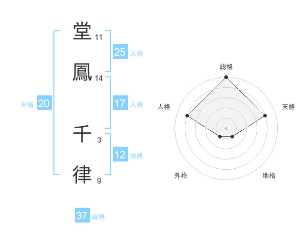 堂鳳 千律さんを姓名の画数から五運を鑑定