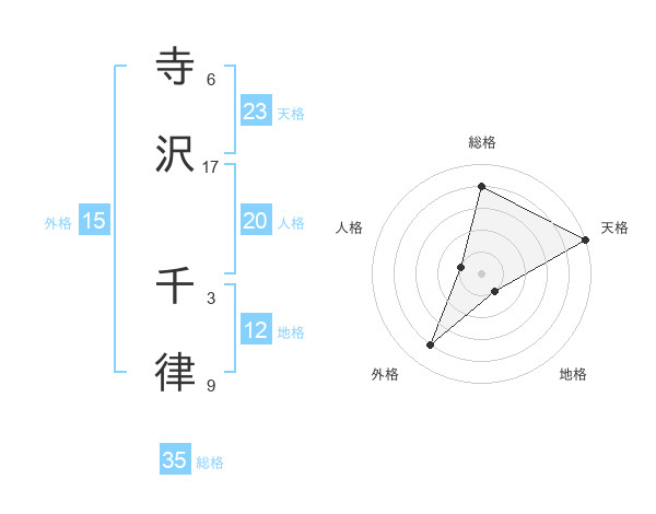 寺沢 千律さんを姓名の画数から五運を鑑定