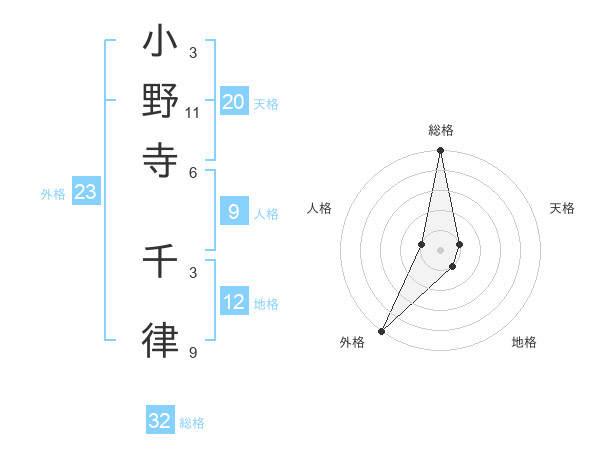 小野寺 千律さんの総格は32画の5点!
