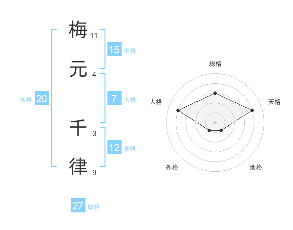 梅元 千律さんの総格は27画の3点!