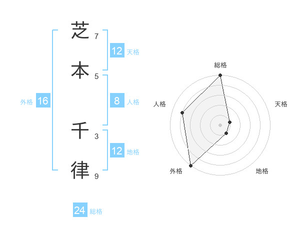 芝本 千律さんの総格は24画の5点!