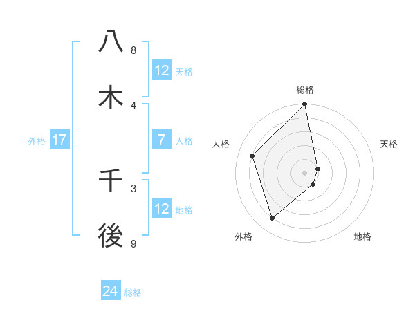 八木 千後さんの総格は24画の5点!