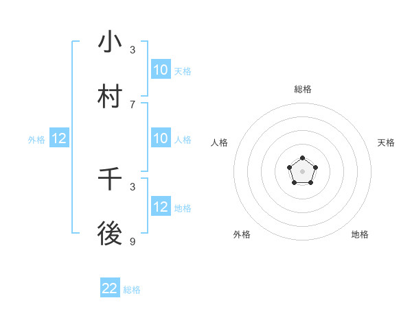 小村 千後さんの総格は22画の1点!