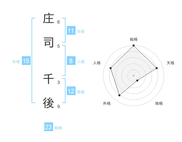 庄司 千後さんの外格は15画の4点!