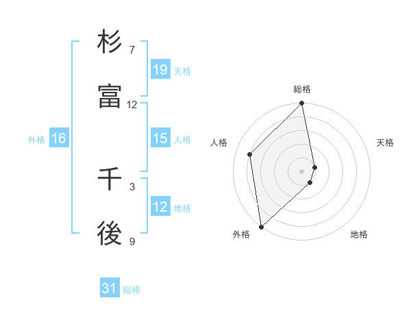 杉富 千後さんの総格は31画の5点!