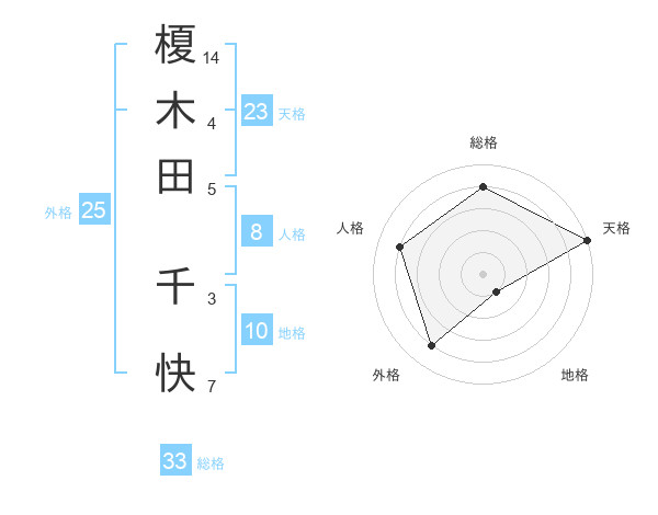 榎木田 千快さんを姓名の画数から五運を鑑定