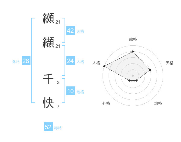 纐纈 千快さんの総格は52画の4点!
