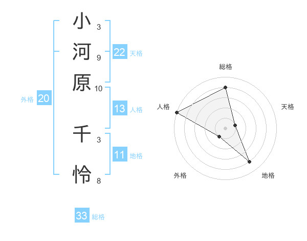 小河原 千怜さんの総格は33画の4点!