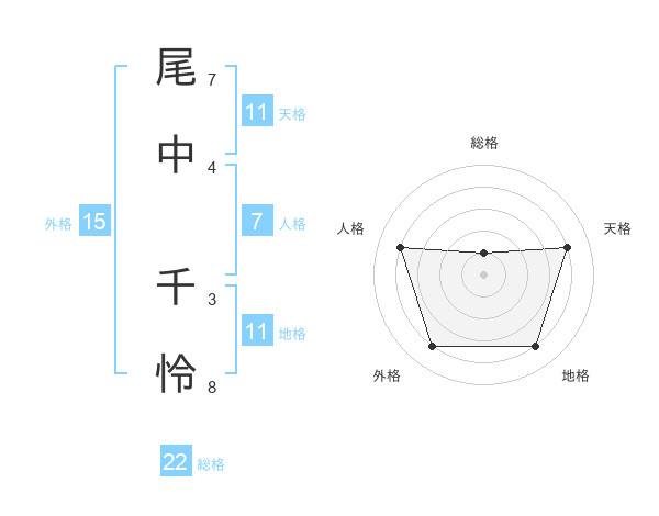 尾中 千怜さんの総格は22画の1点!