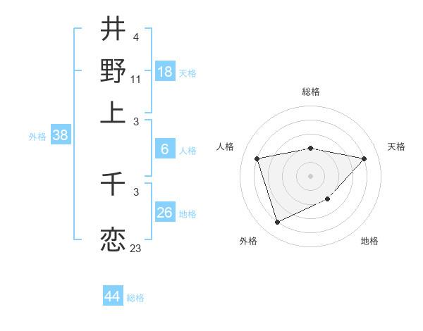 井野上 千恋さんの総格は44画の2点