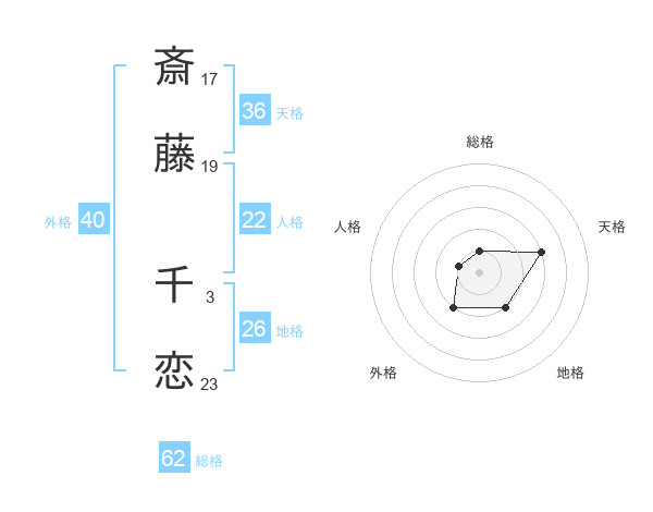 斎藤 千恋さんを姓名の画数から五運を鑑定