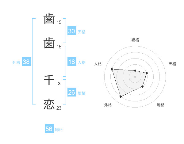 歯歯 千恋さんの外格は38画の4点!