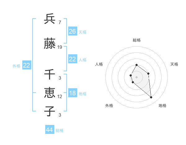兵藤 千恵子さんの総格は44画の2点!