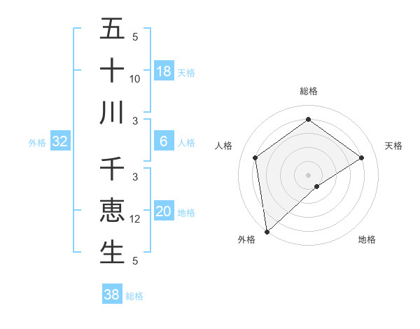 五十川 千恵生さんを姓名の画数から五運を鑑定
