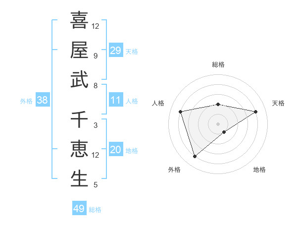 喜屋武 千恵生さんの天格は29画の4点!