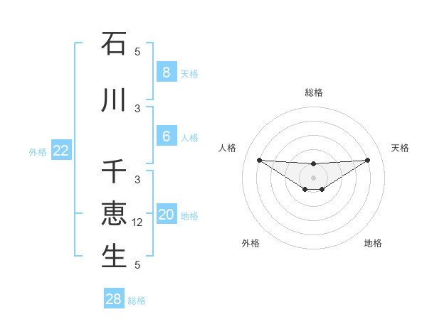 石川 千恵生さんを姓名の画数から五運を鑑定