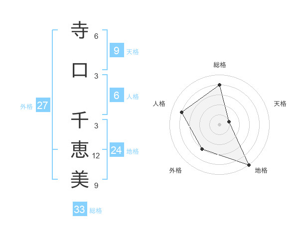寺口 千恵美さんの外格は27画の3点!