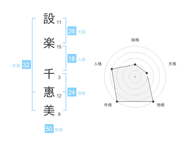 設楽 千惠美さんを姓名の画数から五運を鑑定