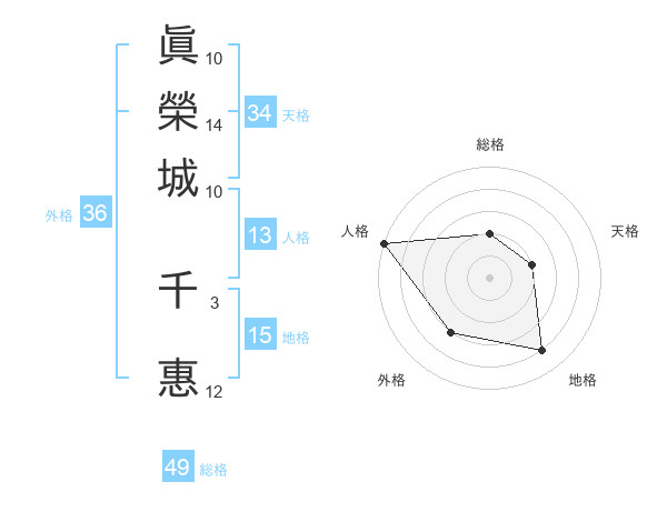 眞榮城 千惠さんの人格は13画の5点!