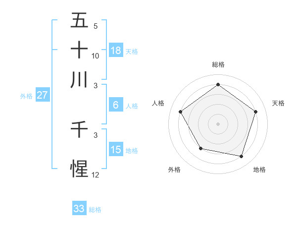 五十川 千惺さんを姓名の画数から五運を鑑定