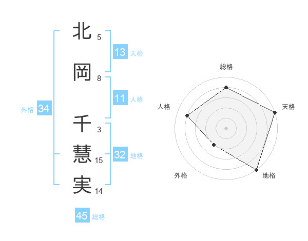 北岡 千慧実さんの総格は45画の4点!