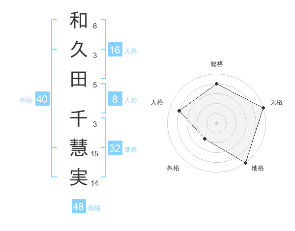 和久田 千慧実さんを姓名の画数から五運を鑑定