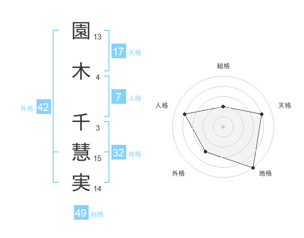 園木 千慧実さんの総格は49画の2点!