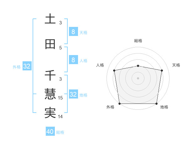土田 千慧実さんを姓名の画数から五運を鑑定
