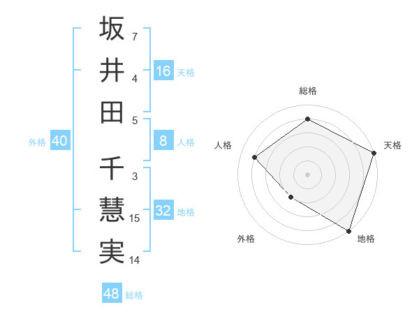 坂井田 千慧実さんを姓名の画数から五運を鑑定