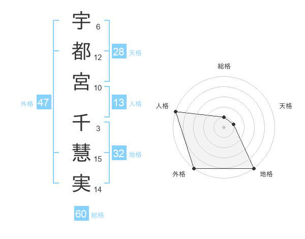 宇都宮 千慧実さんを姓名の画数から五運を鑑定