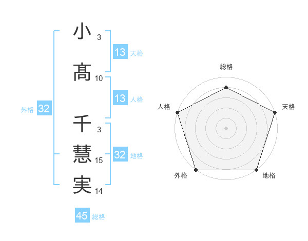 小髙 千慧実さんを姓名の画数から五運を鑑定