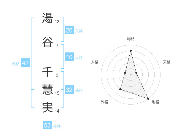 湯谷 千慧実さんを姓名の画数から五運を鑑定