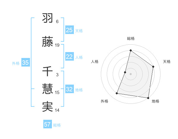 羽藤 千慧実さんを姓名の画数から五運を鑑定