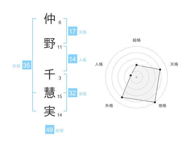 仲野 千慧実さんを姓名の画数から五運を鑑定
