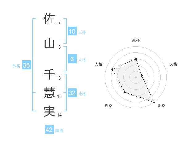 佐山 千慧実さんを姓名の画数から五運を鑑定