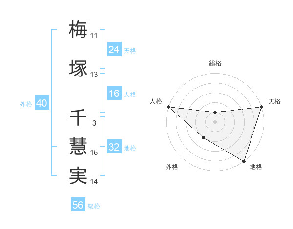 梅塚 千慧実さんを姓名の画数から五運を鑑定