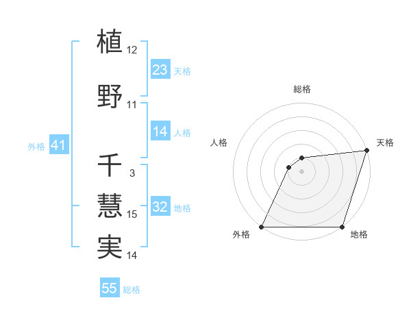 植野 千慧実さんの外格は41画の5点!