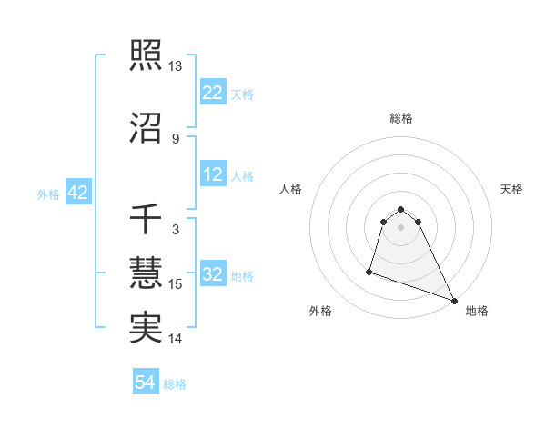照沼 千慧実さんの天格は22画の1点!