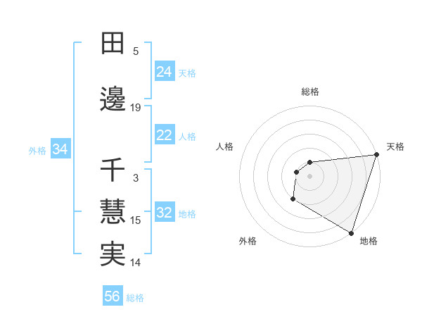 田邊 千慧実さんの天格は24画の5点!