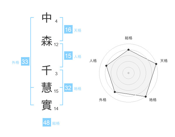 中森 千慧實さんを姓名の画数から五運を鑑定