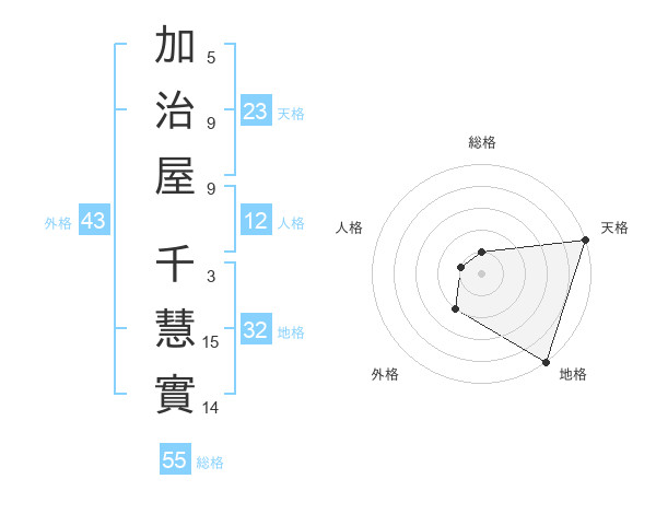 加治屋 千慧實さんを姓名の画数から五運を鑑定