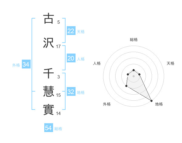 古沢 千慧實さんを姓名の画数から五運を鑑定