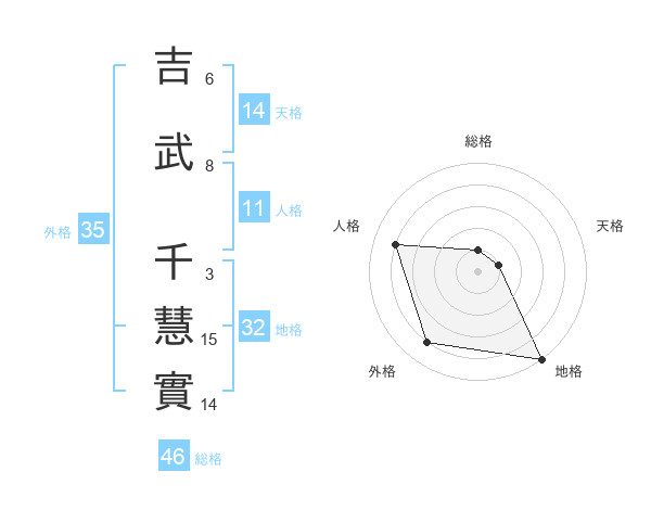 吉武 千慧實さんの外格は35画の4点!