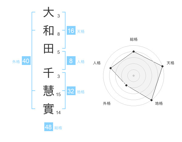 大和田 千慧實さんを姓名の画数から五運を鑑定