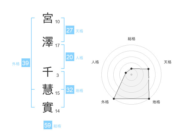 宮澤 千慧實さんを姓名の画数から五運を鑑定