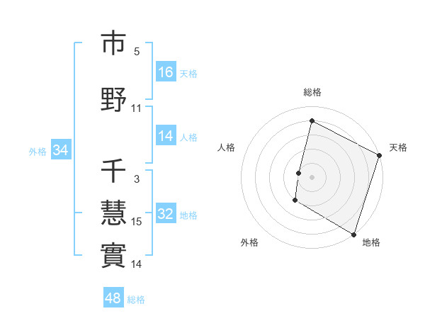 市野 千慧實さんを姓名の画数から五運を鑑定