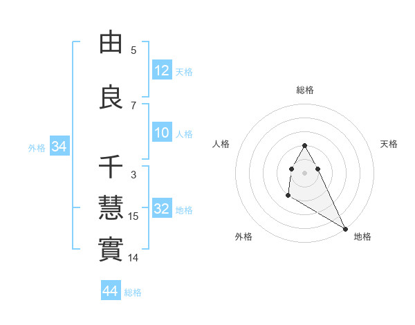 由良 千慧實さんを姓名の画数から五運を鑑定