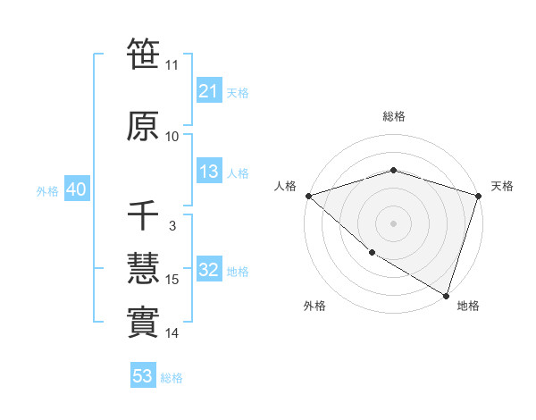 笹原 千慧實さんを姓名の画数から五運を鑑定